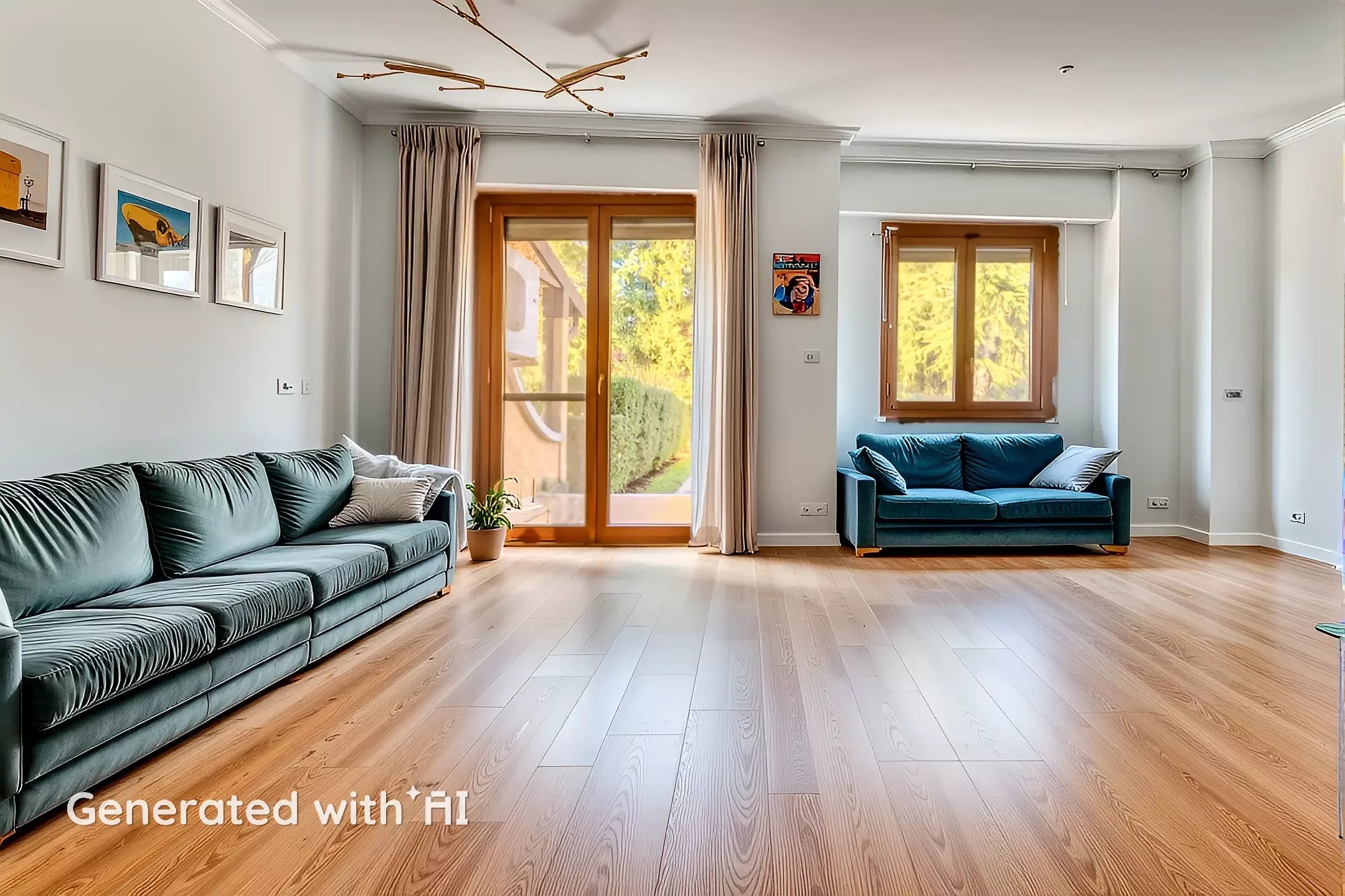 Una comoda scala conduce al cuore della casa. Qui troviamo un ampio e accogliente soggiorno con zona pranzo, collegato direttamente al patio e al giardino privato, un'oasi verde perfetta per cene estive e momenti di relax all'aperto. Completano il piano la spaziosa cucina abitabile e un bagno di servizio.