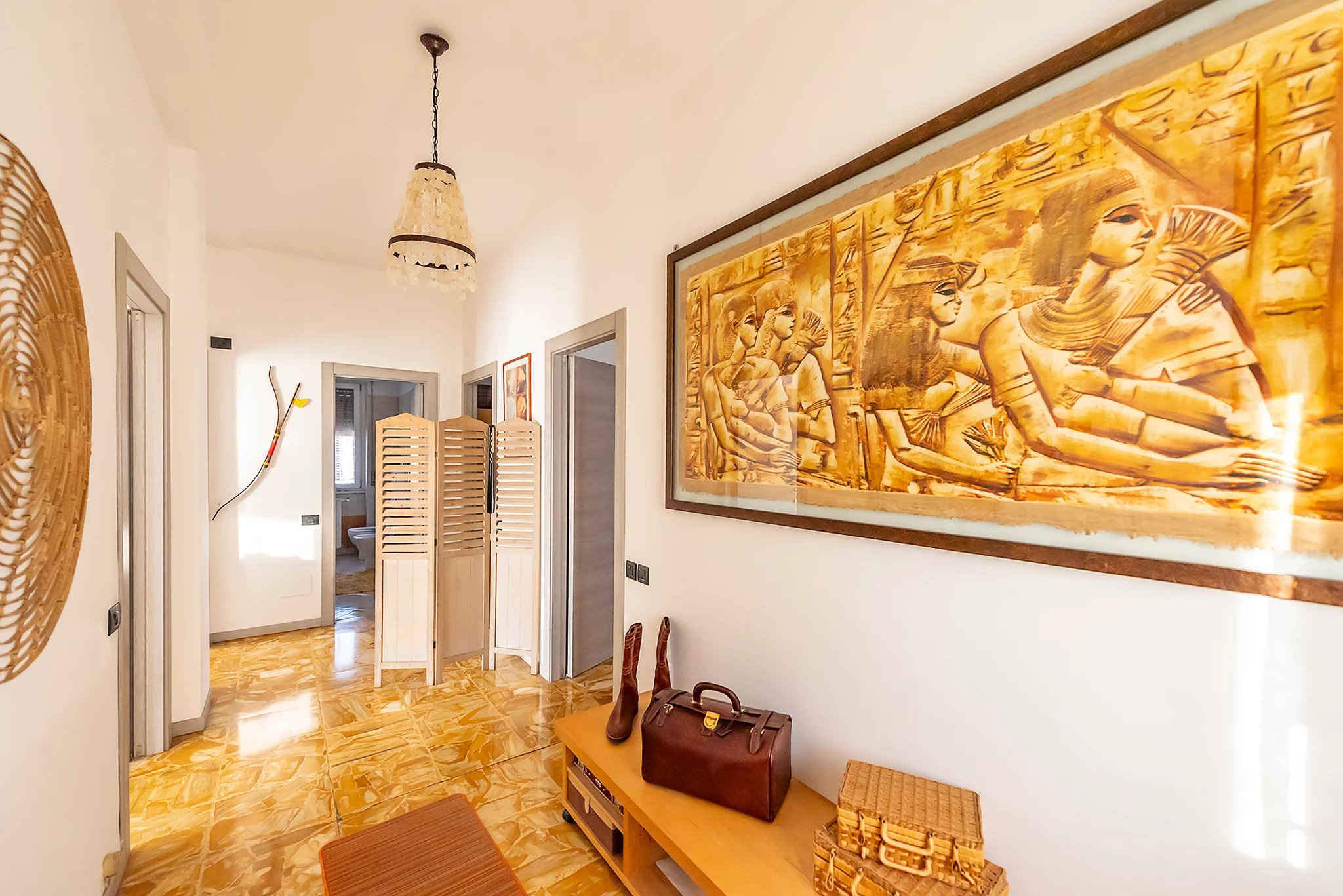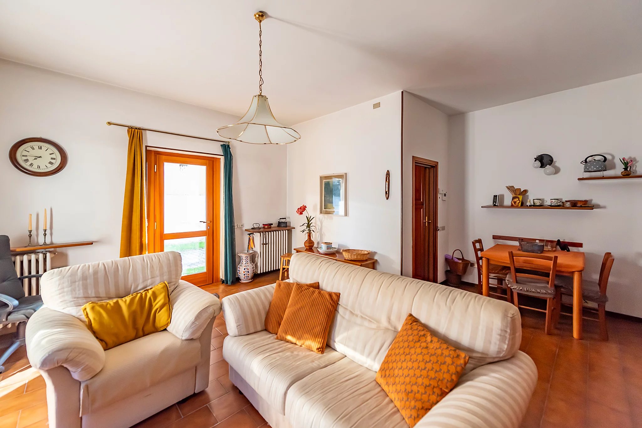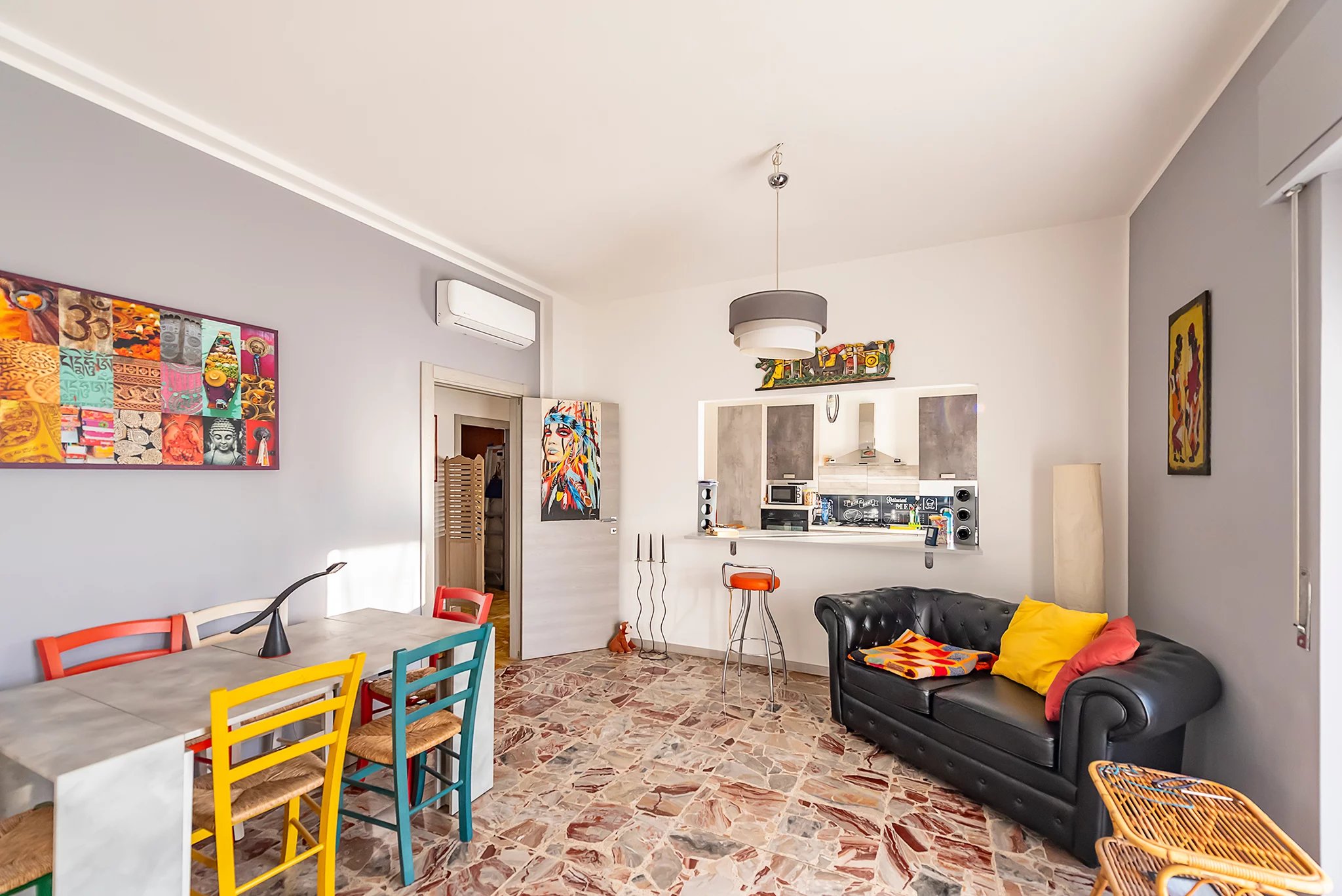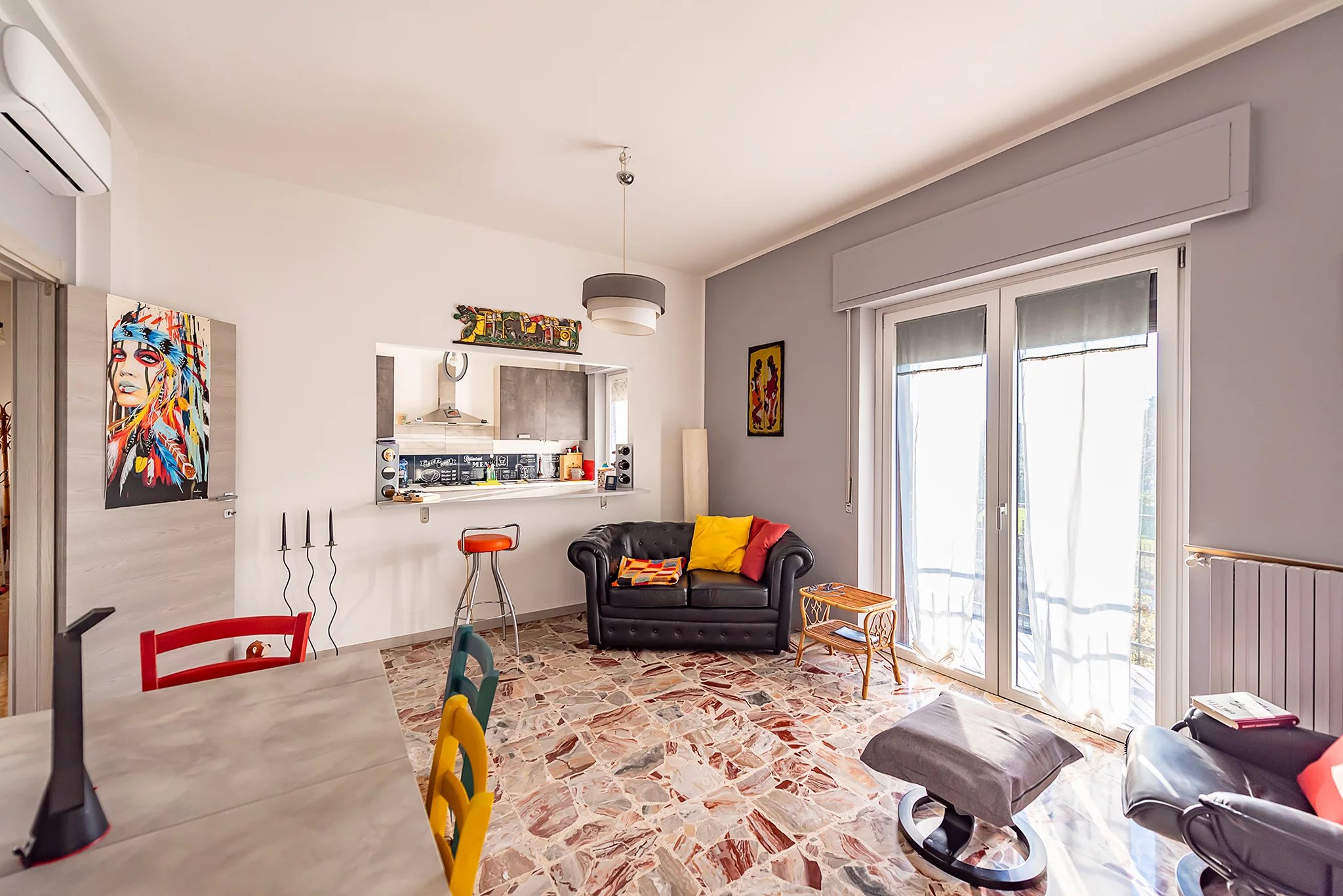 L'alloggio al piano superiore è stato completamente ristrutturato nel 2018 e si presenta in ottime condizioni. La soluzione ha una cucina abitabile resa a vista sull’ampio e luminoso soggiorno, due camere matrimoniali, Bagno ristrutturato, balcone con affaccio verso il tramonto.