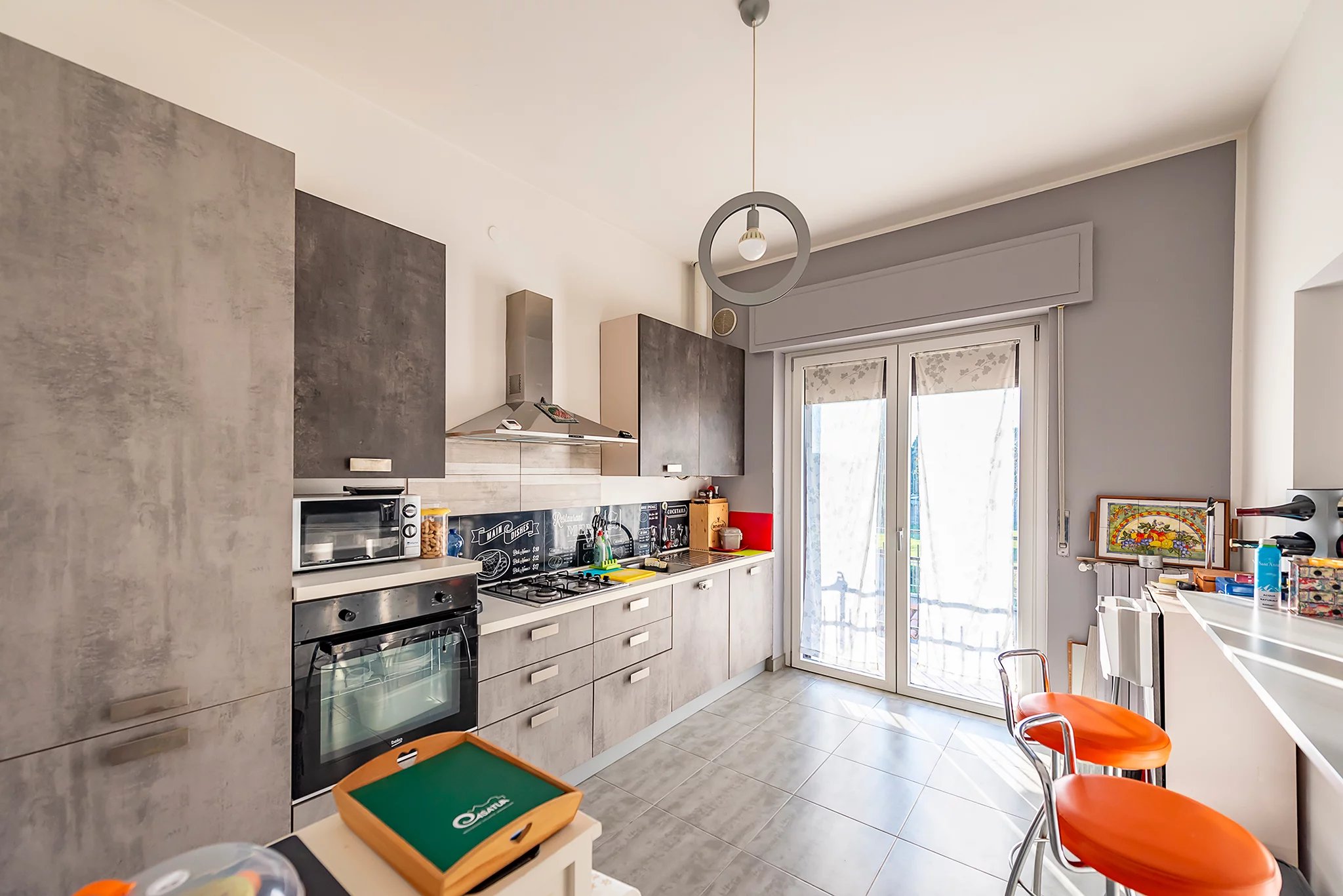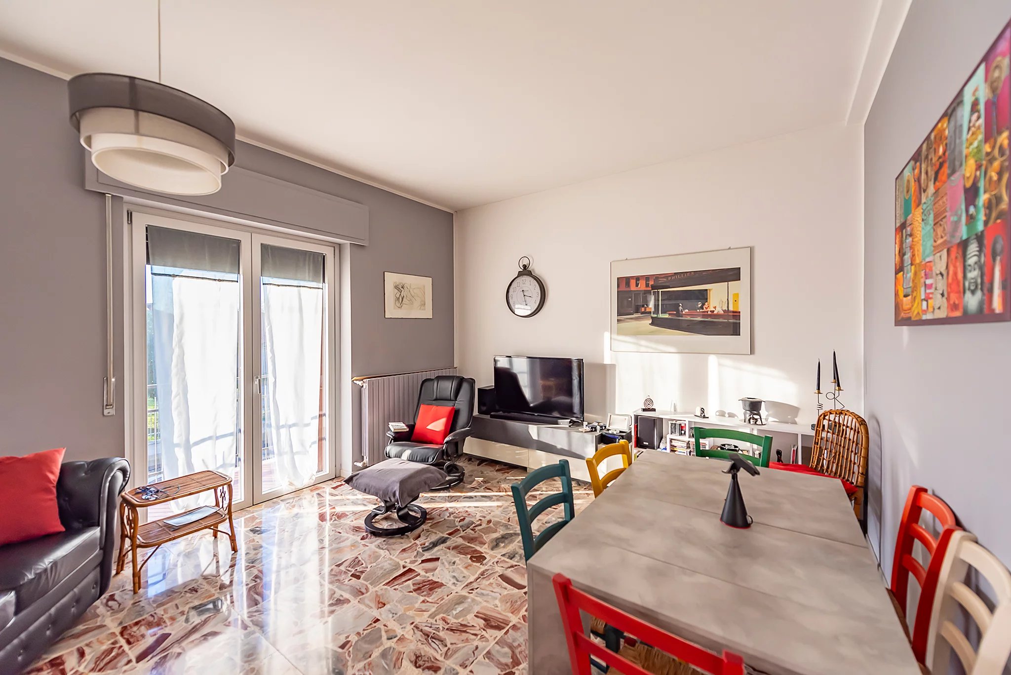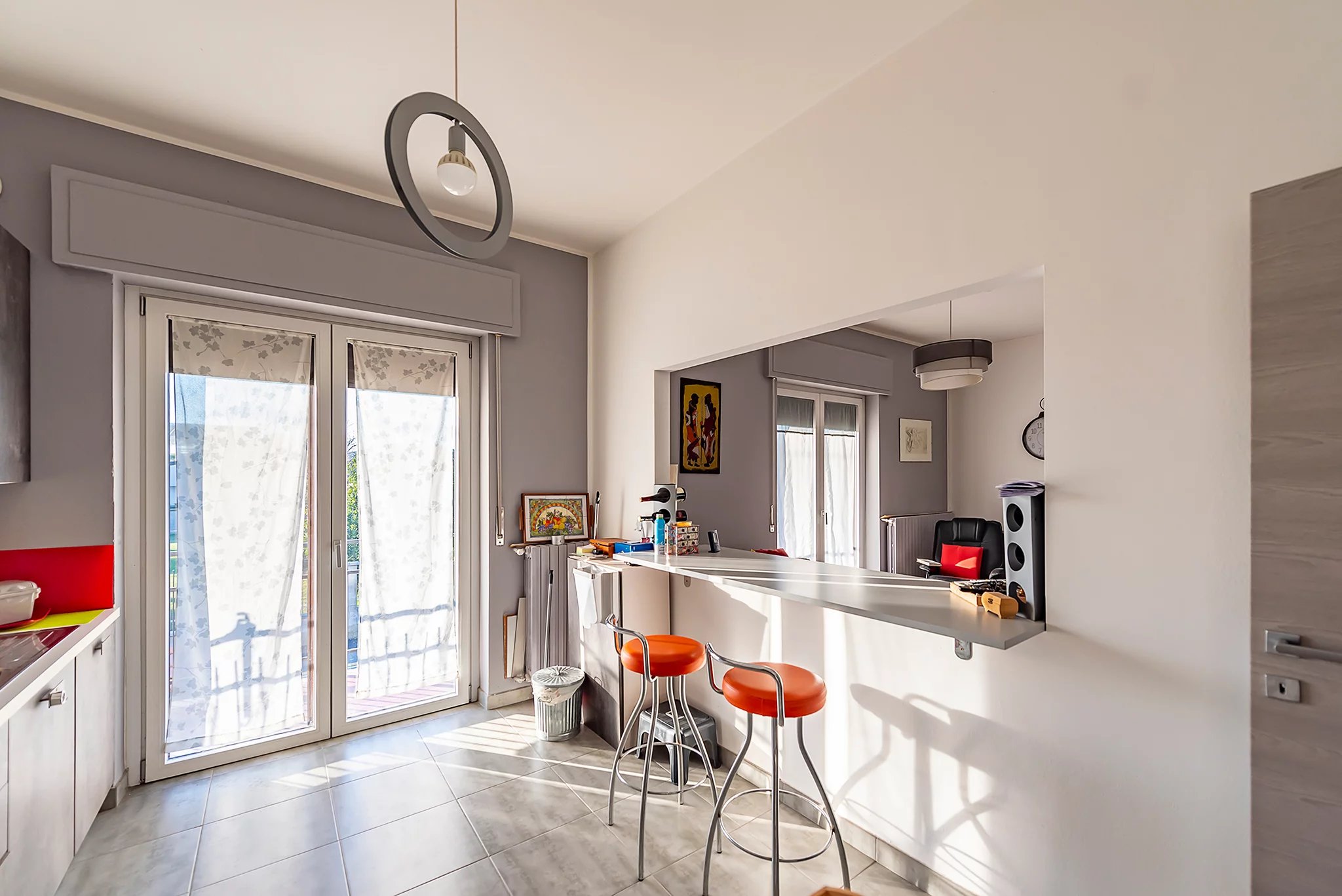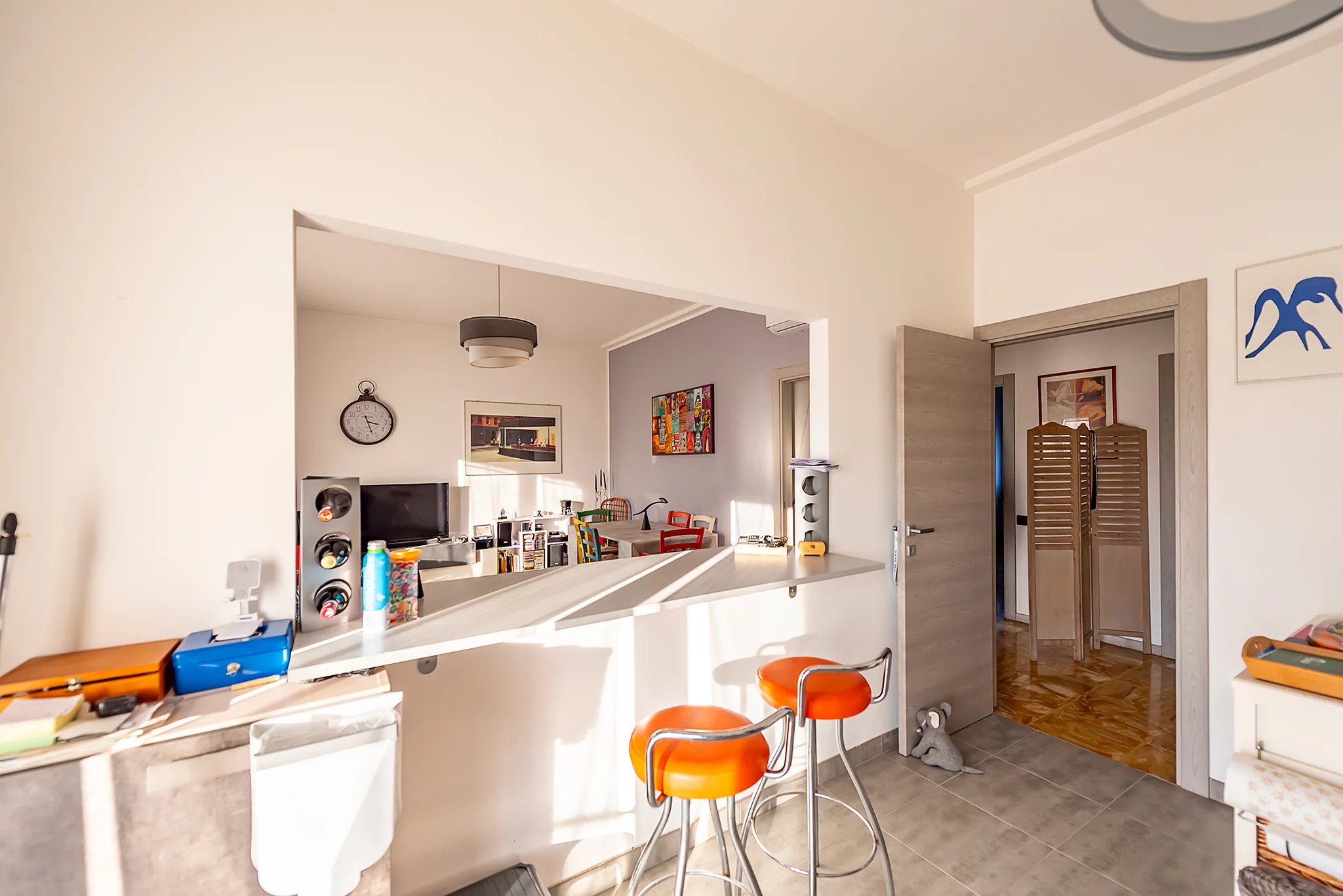 L'alloggio al piano superiore è stato completamente ristrutturato nel 2018 e si presenta in ottime condizioni. La soluzione ha una cucina abitabile resa a vista sull’ampio e luminoso soggiorno, due camere matrimoniali, Bagno ristrutturato, balcone con affaccio verso il tramonto.