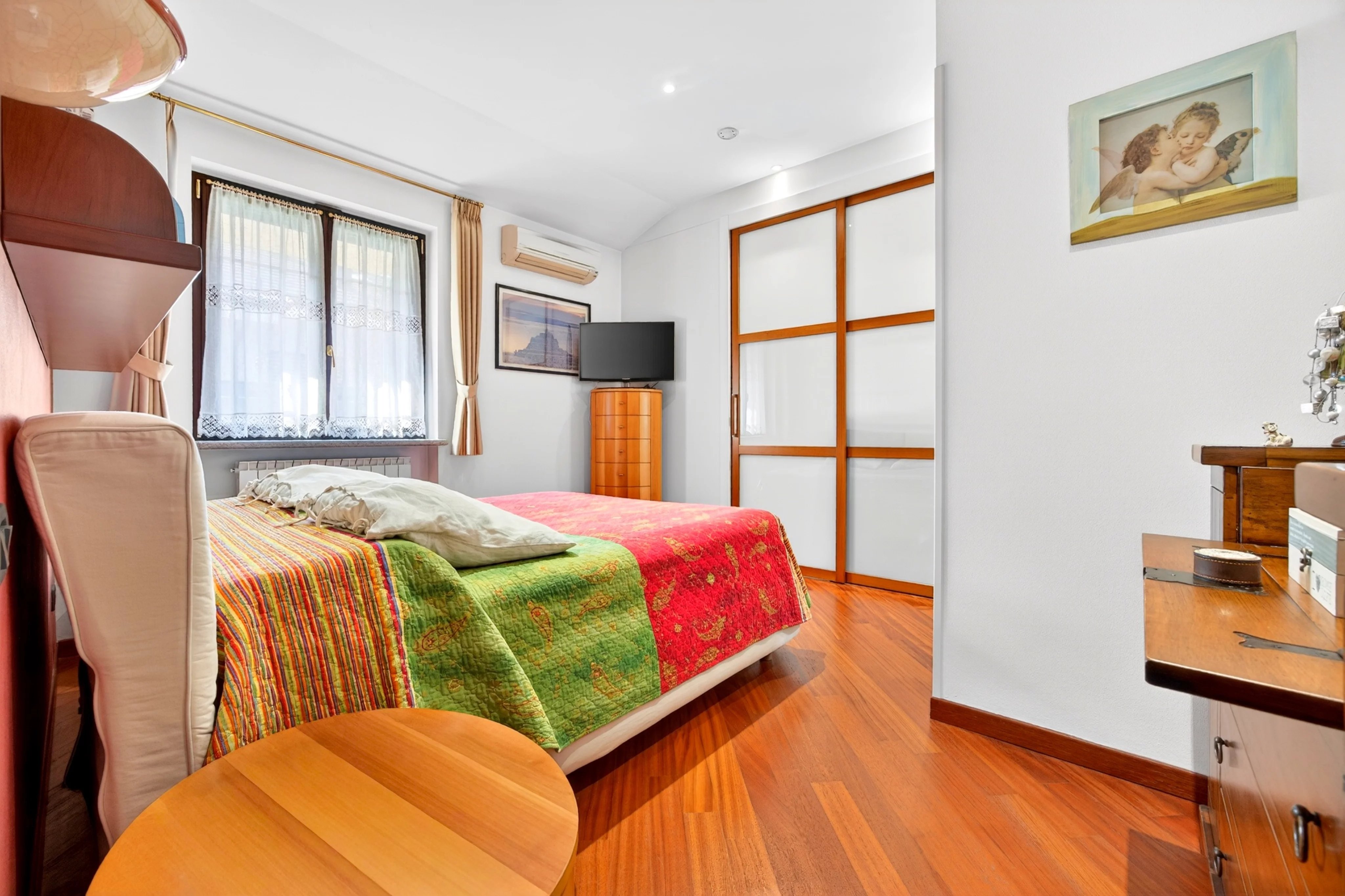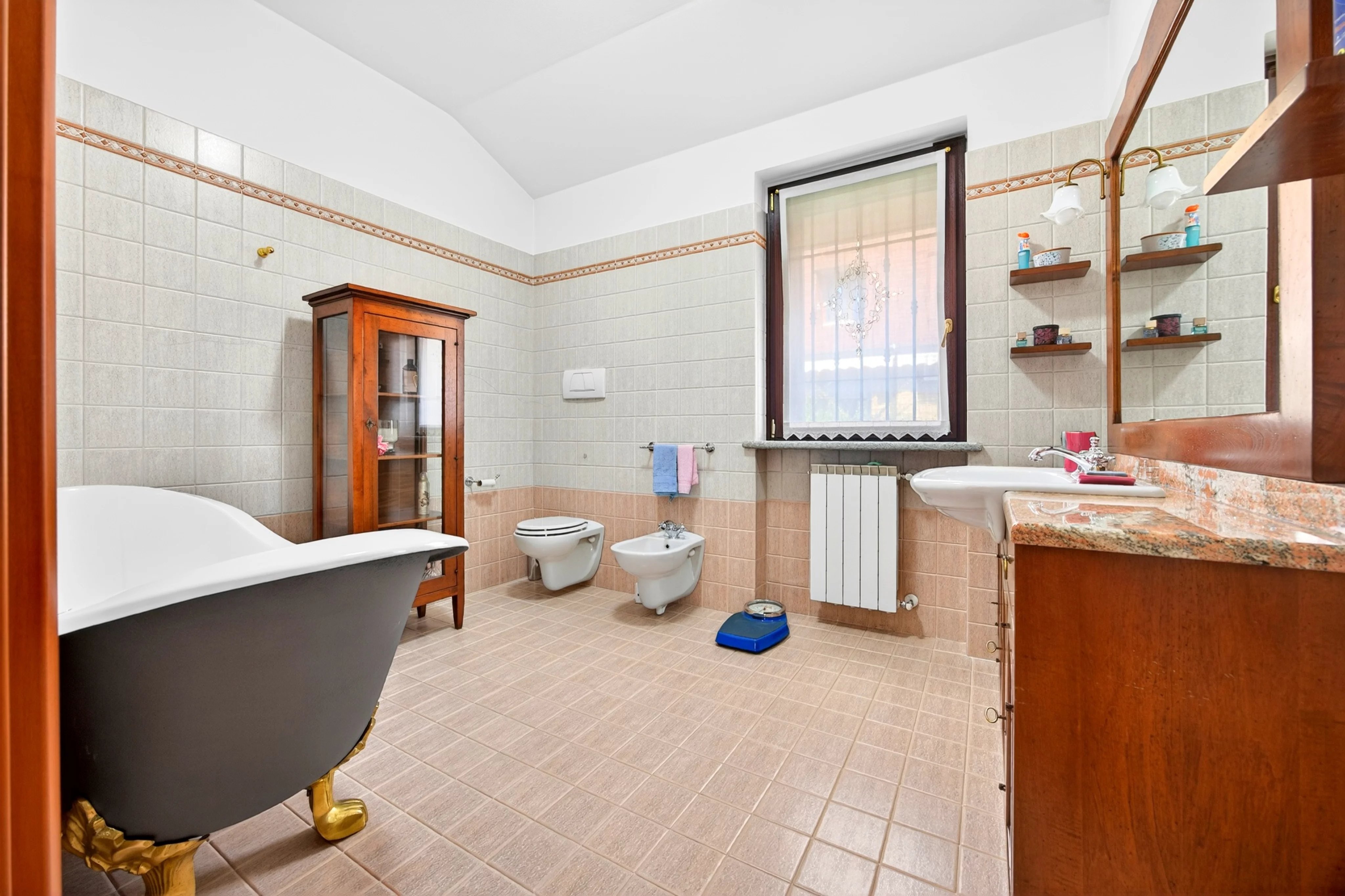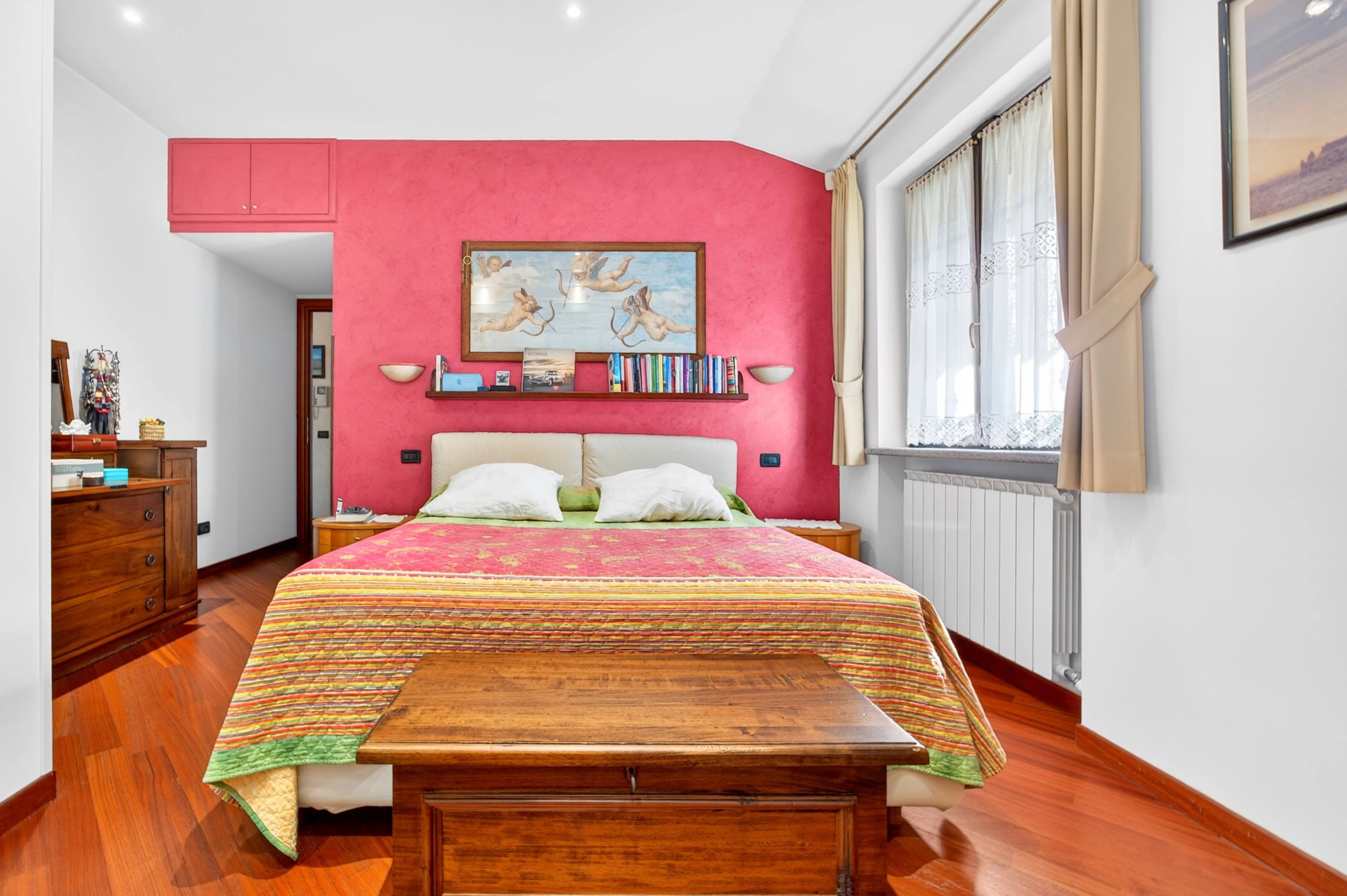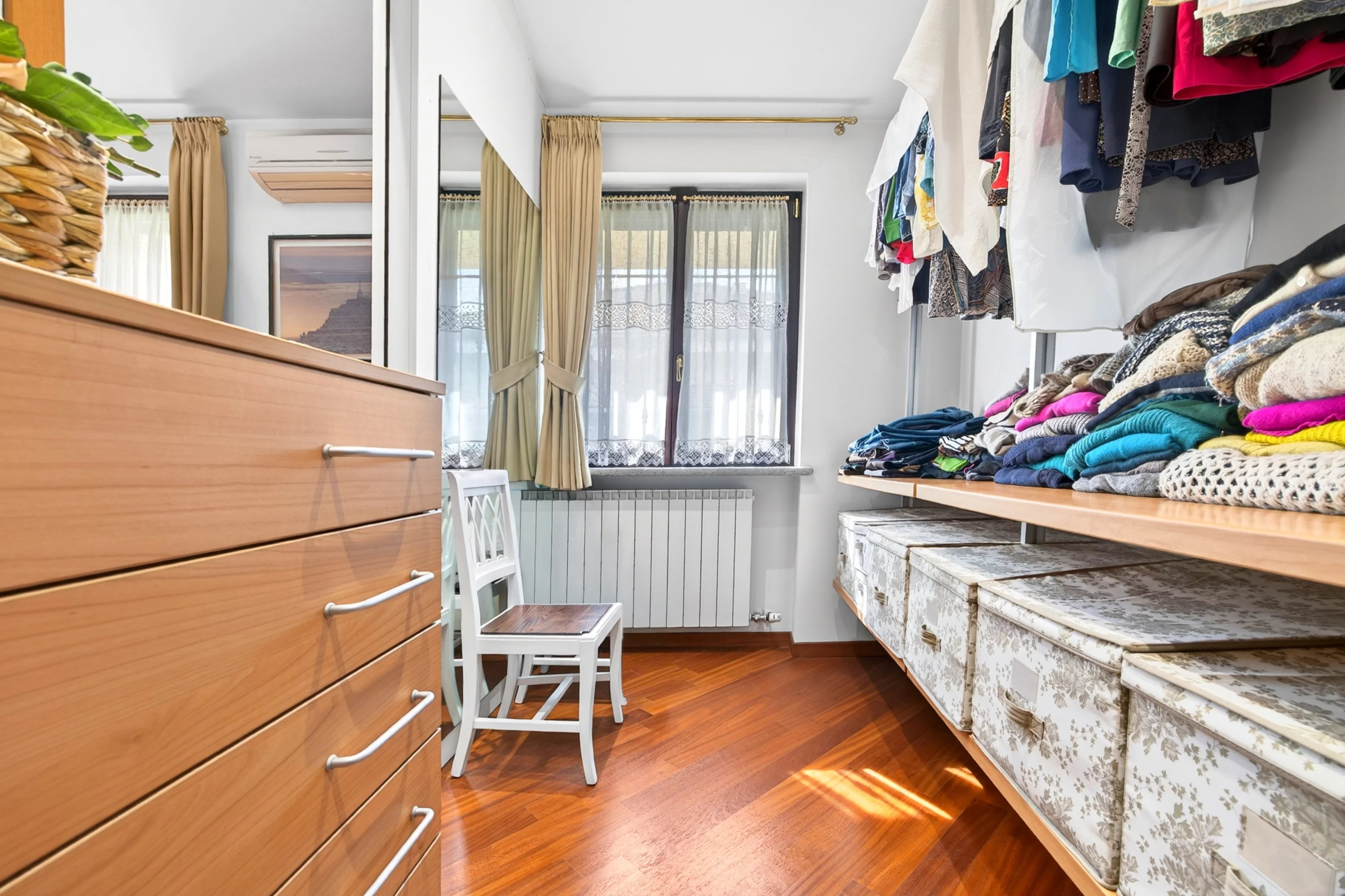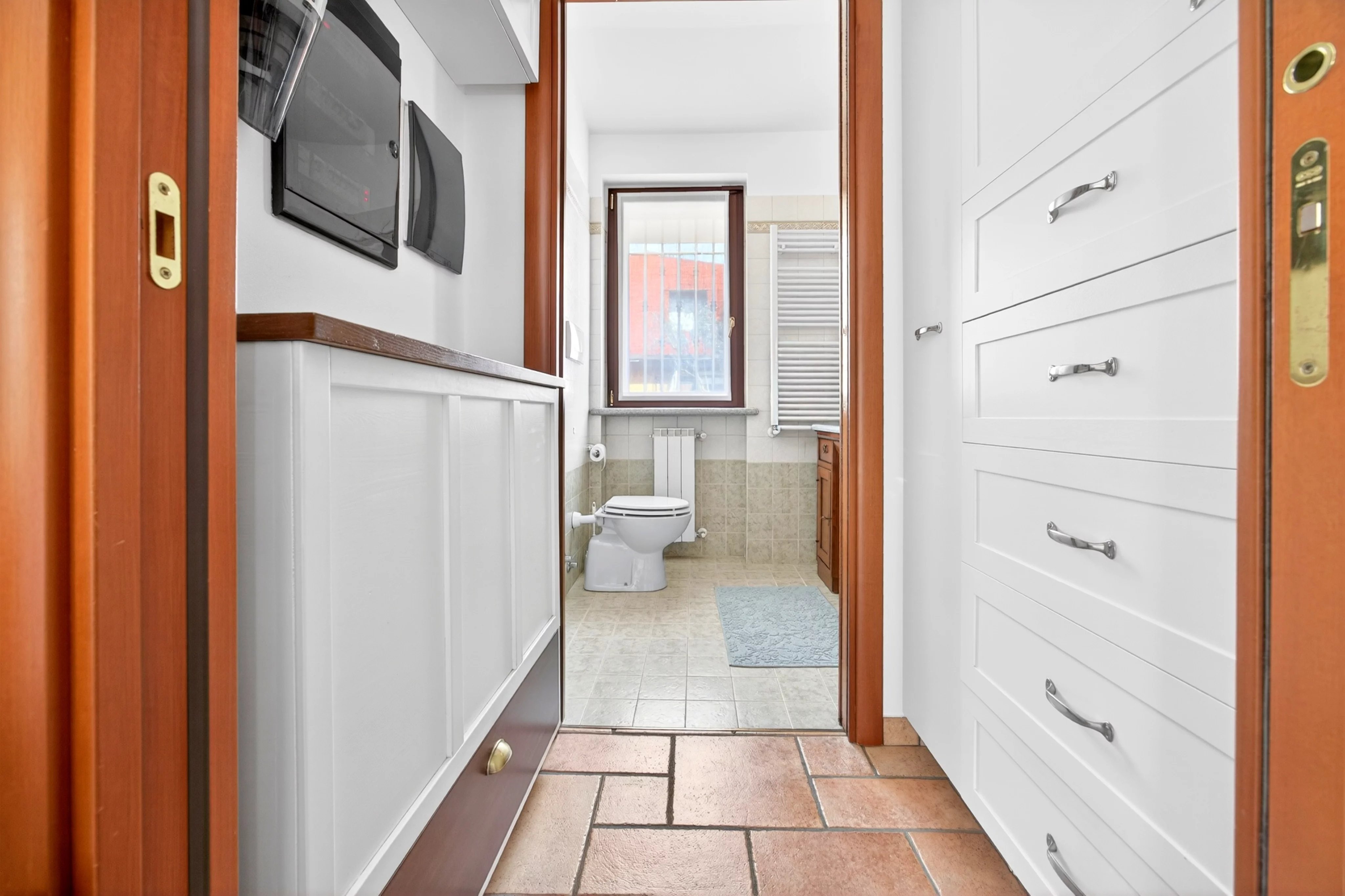 L'ingresso principale conduce a un ampio salone con zona pranzo, valorizzato da soffitti alti con travi a vista che donano calore e fascino; la cucina abitabile a vista è perfettamente integrata nel living. La zona notte è composta da tre camere da letto accoglienti, con la camera matrimoniale che vanta una cabina armadio dedicata e un bagno en-suite. Al piano interrato troviamo la taverna indipendente, uno spazio versatile di 60 mq con ingresso proprio, ideale come sala hobby o zona relax, completo di lavanderia e locali tecnici.