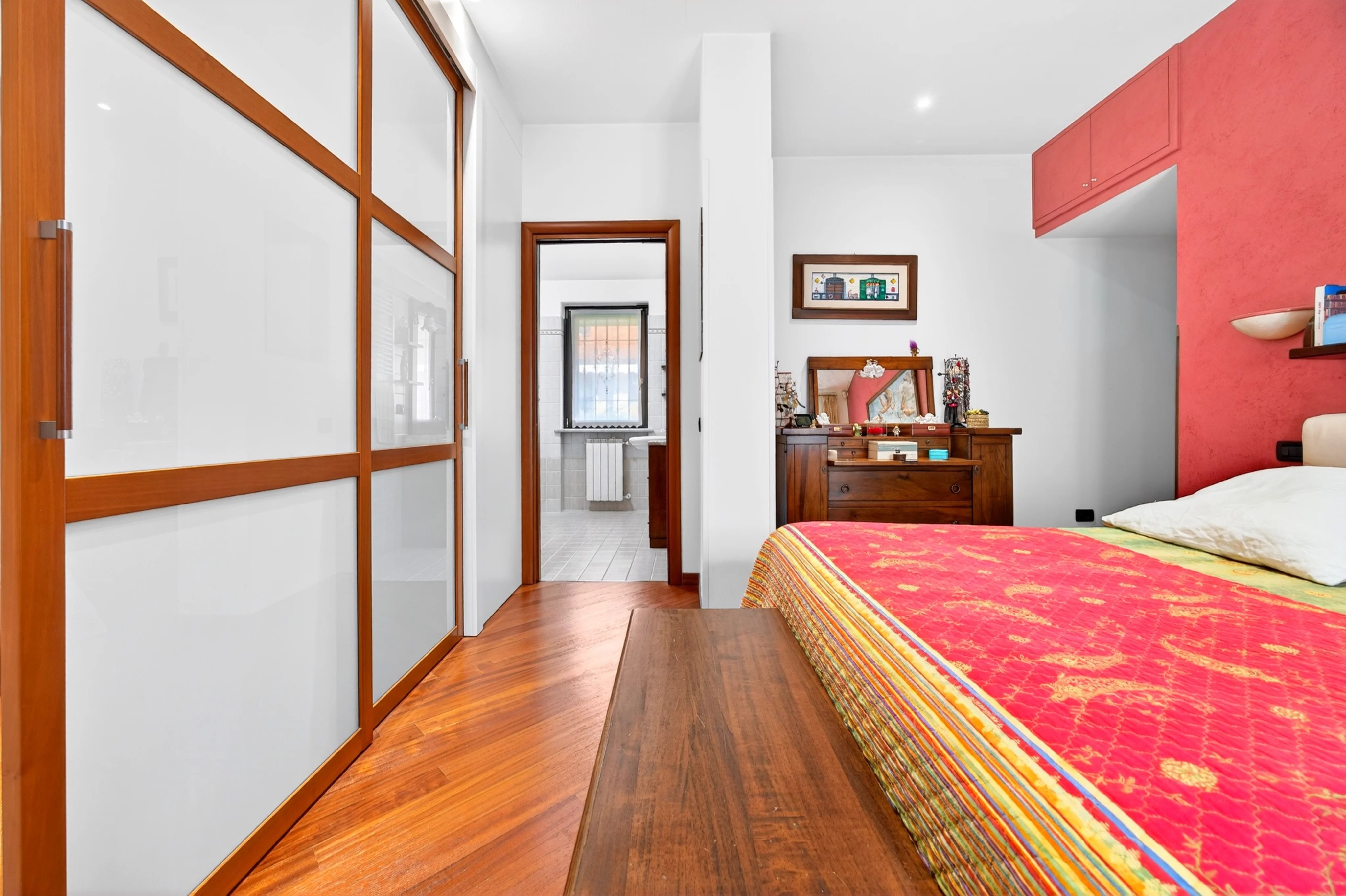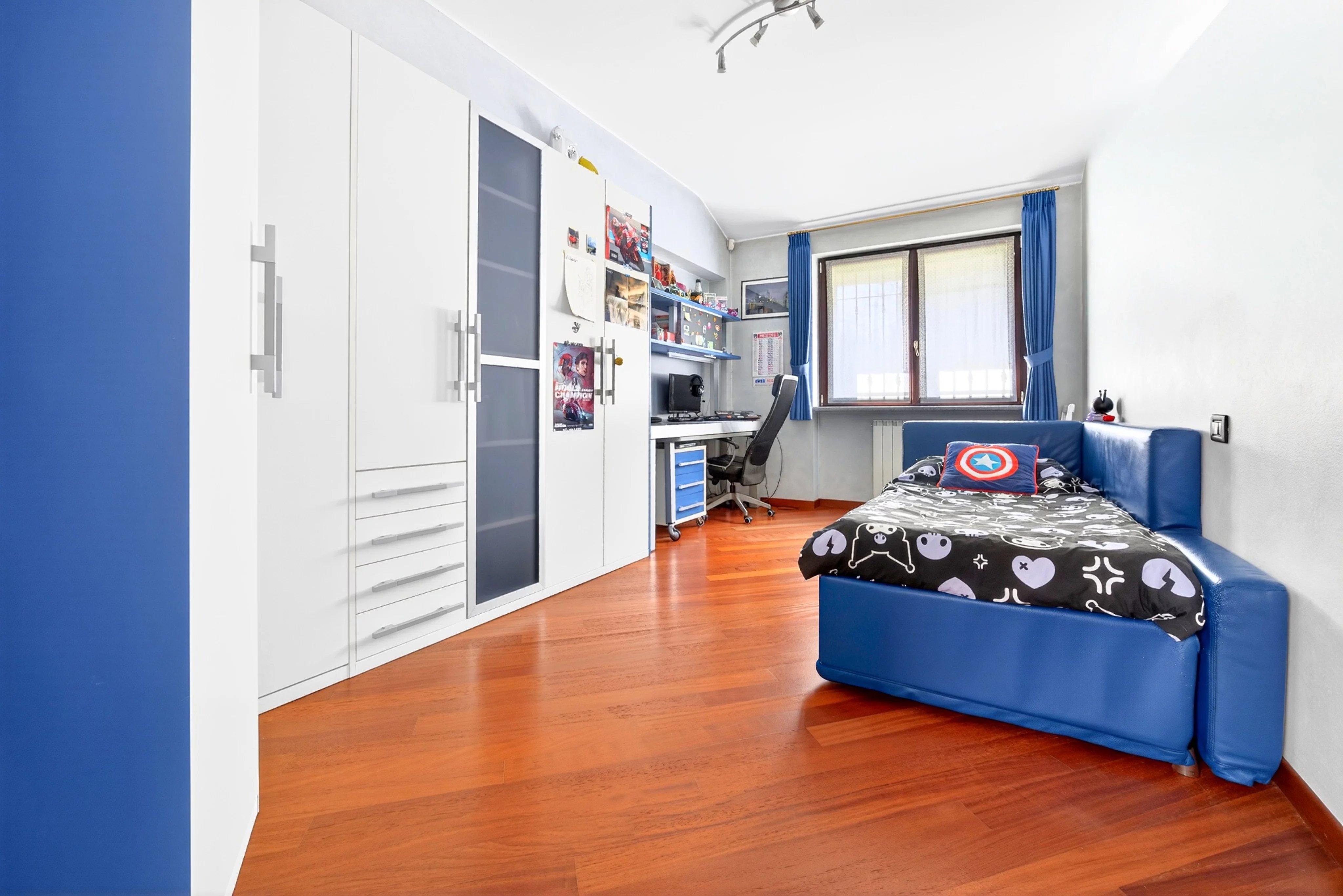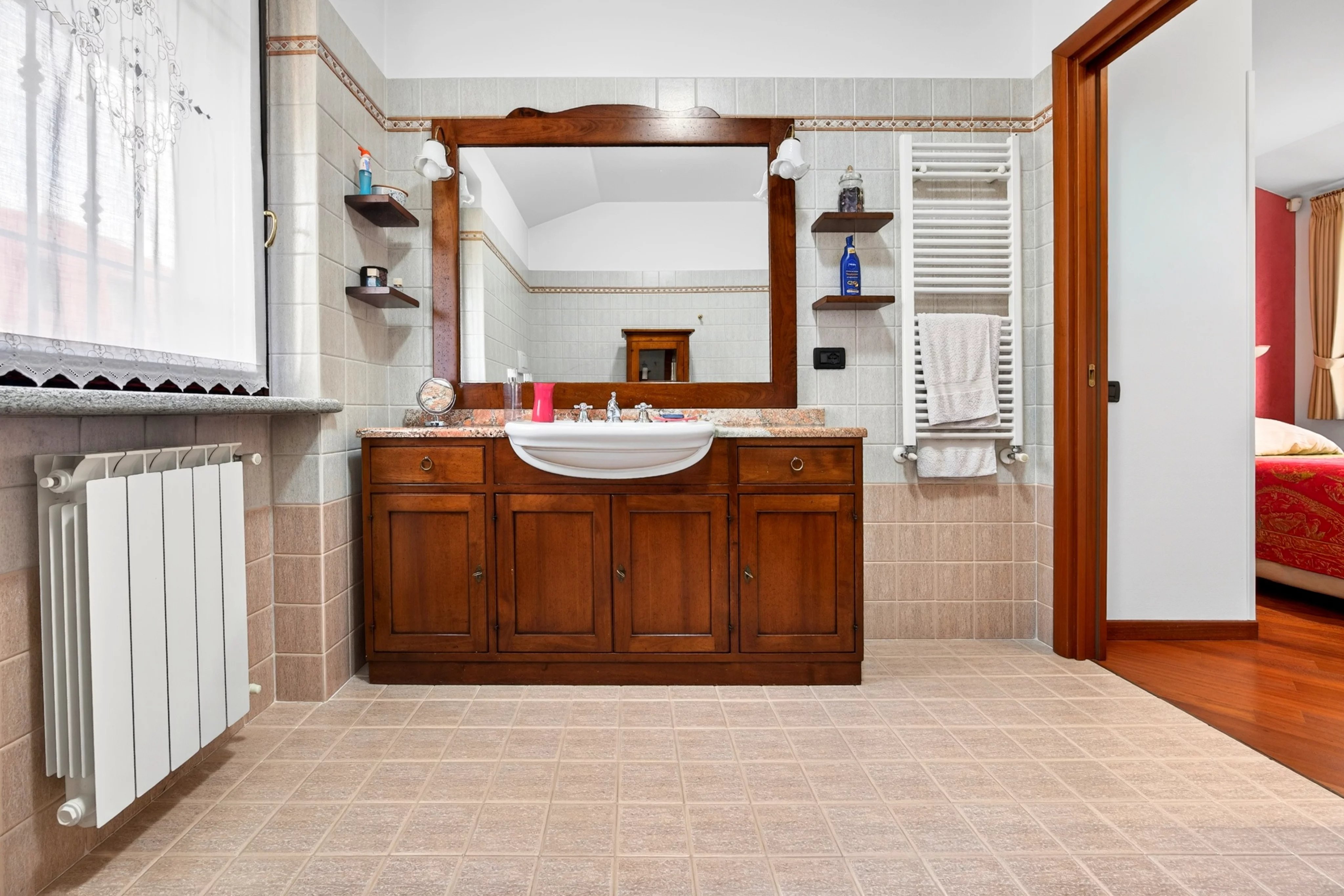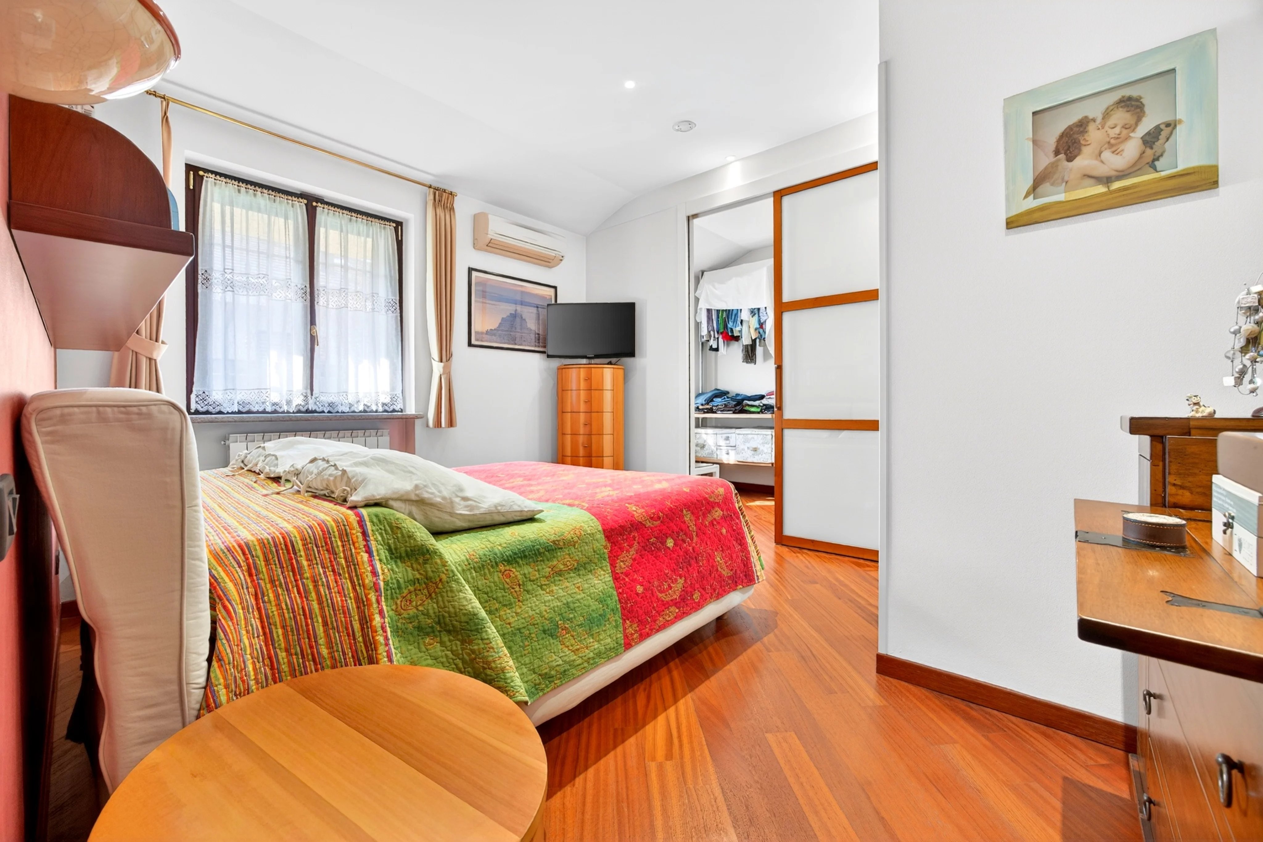 L'ingresso principale conduce a un ampio salone con zona pranzo, valorizzato da soffitti alti con travi a vista che donano calore e fascino; la cucina abitabile a vista è perfettamente integrata nel living. La zona notte è composta da tre camere da letto accoglienti, con la camera matrimoniale che vanta una cabina armadio dedicata e un bagno en-suite. Al piano interrato troviamo la taverna indipendente, uno spazio versatile di 60 mq con ingresso proprio, ideale come sala hobby o zona relax, completo di lavanderia e locali tecnici.