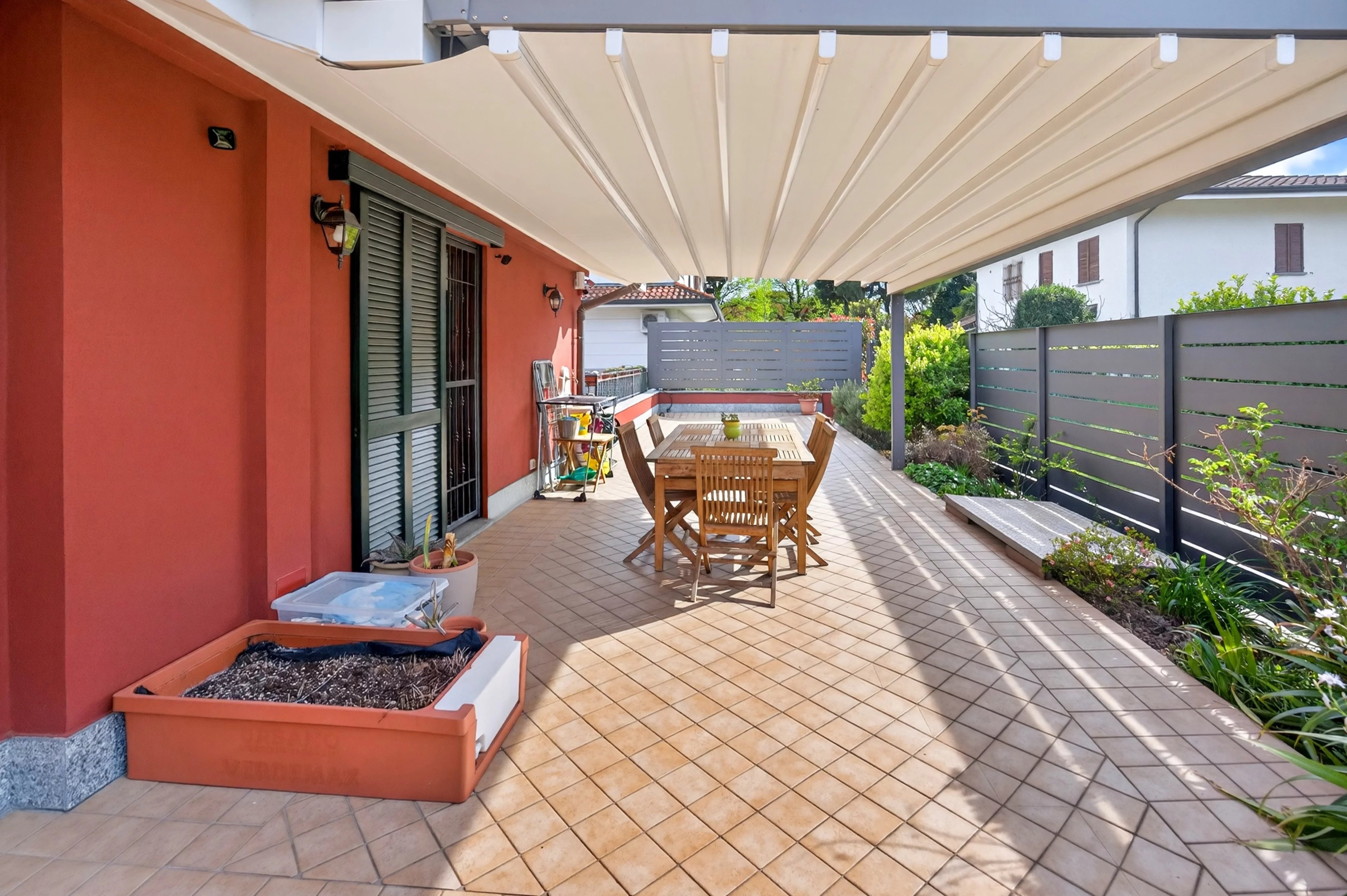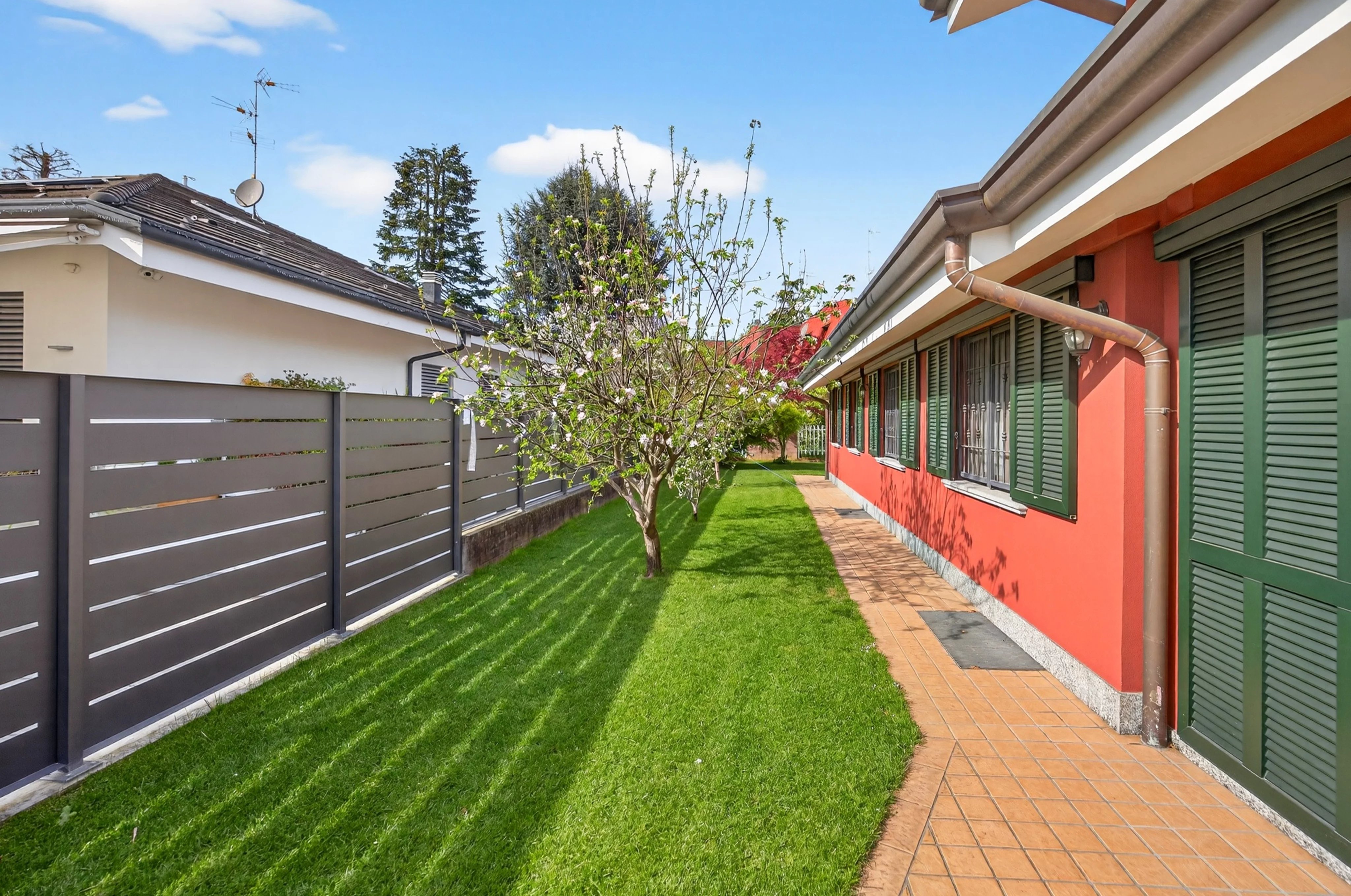 Il giardino privato di 300 mq abbraccia la casa su tre lati, offrendo un'oasi di pace per i vostri momenti all'aperto.