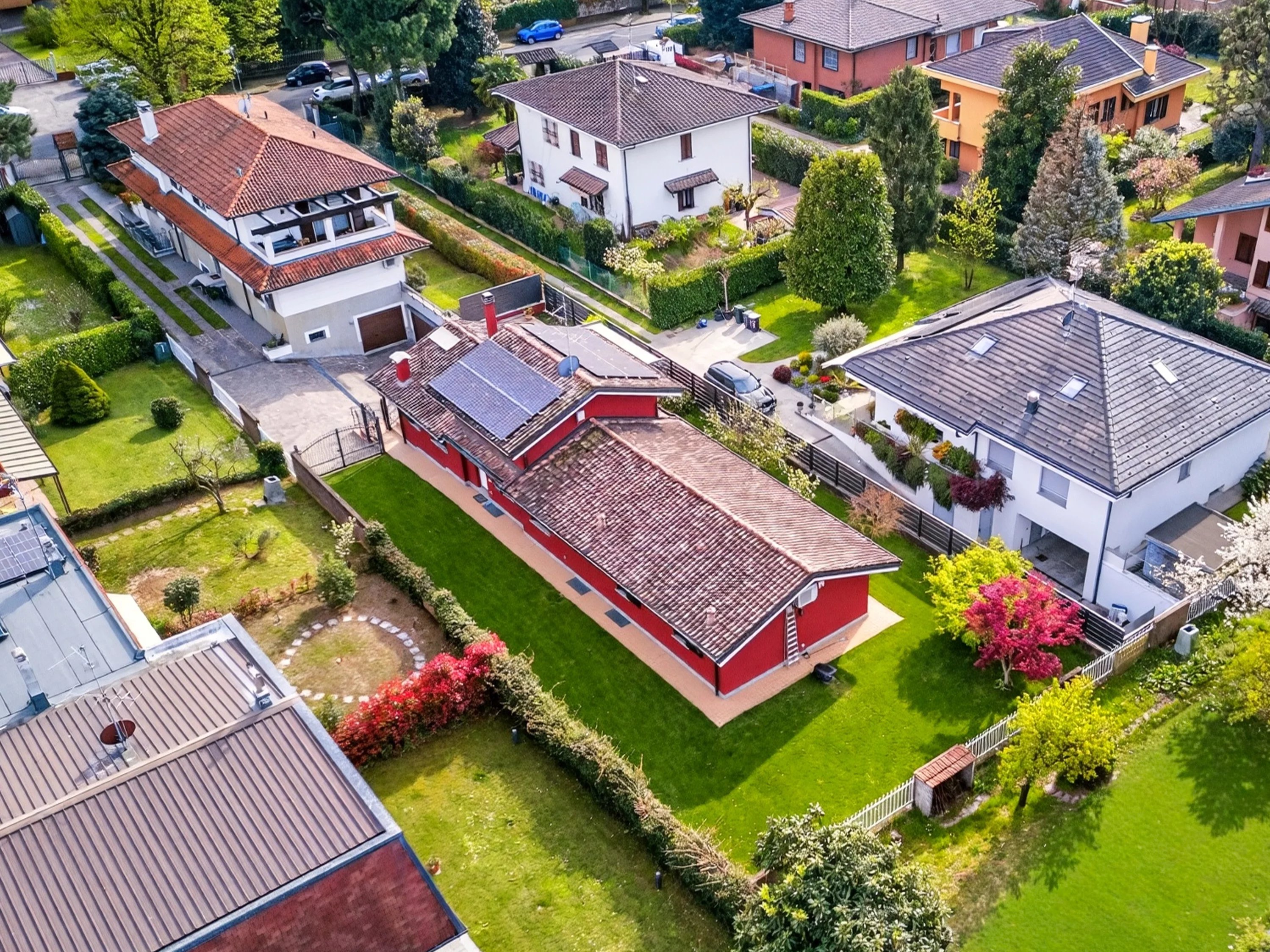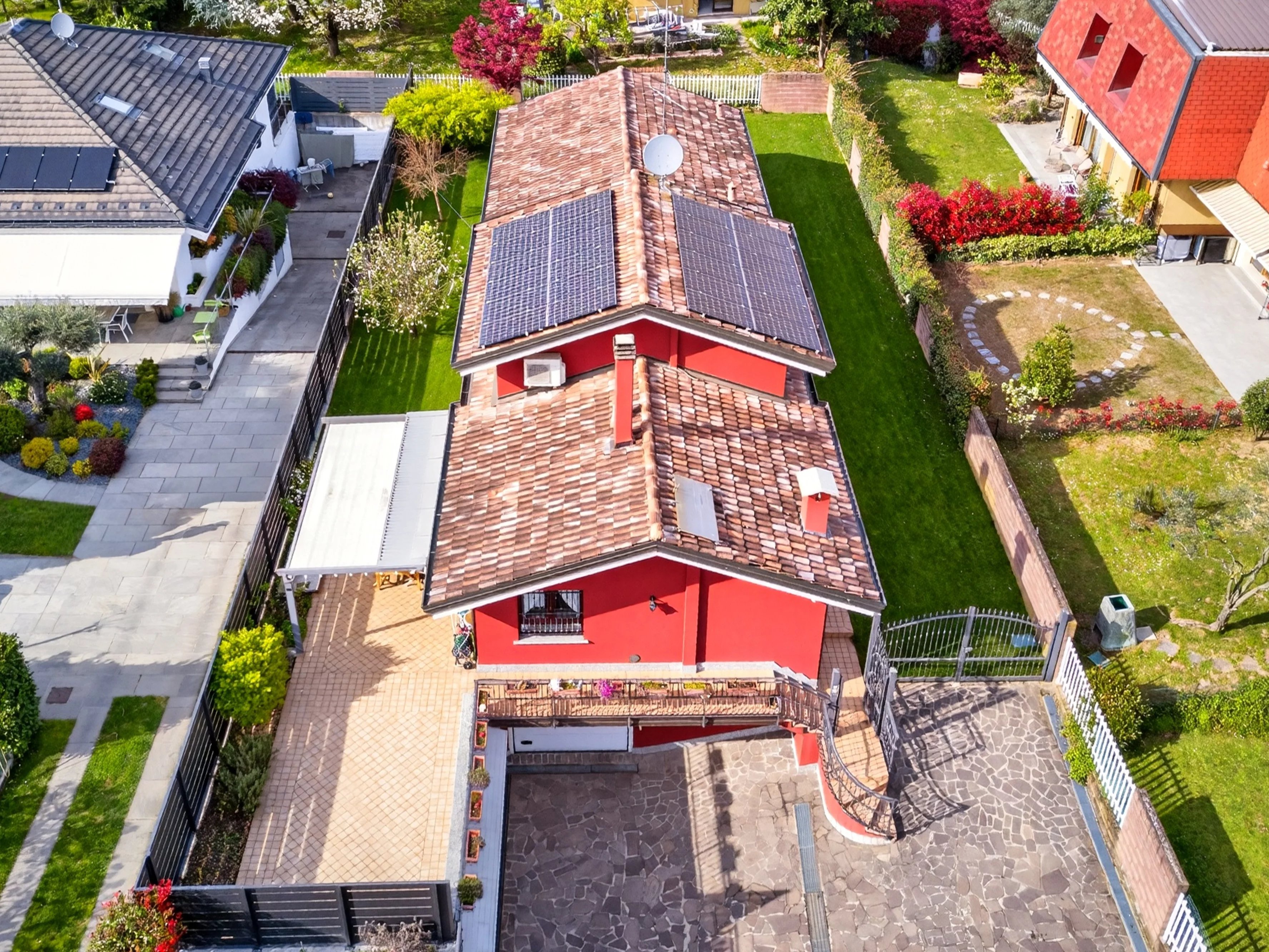 Questa villa vanta dotazioni tecnologiche di altissimo livello: impianto fotovoltaico da 6kW con batterie di accumulo e Wall Box per la tua auto elettrica, riscaldamento a pavimento, climatizzazione con pompa di calore e addolcitore dell'acqua.