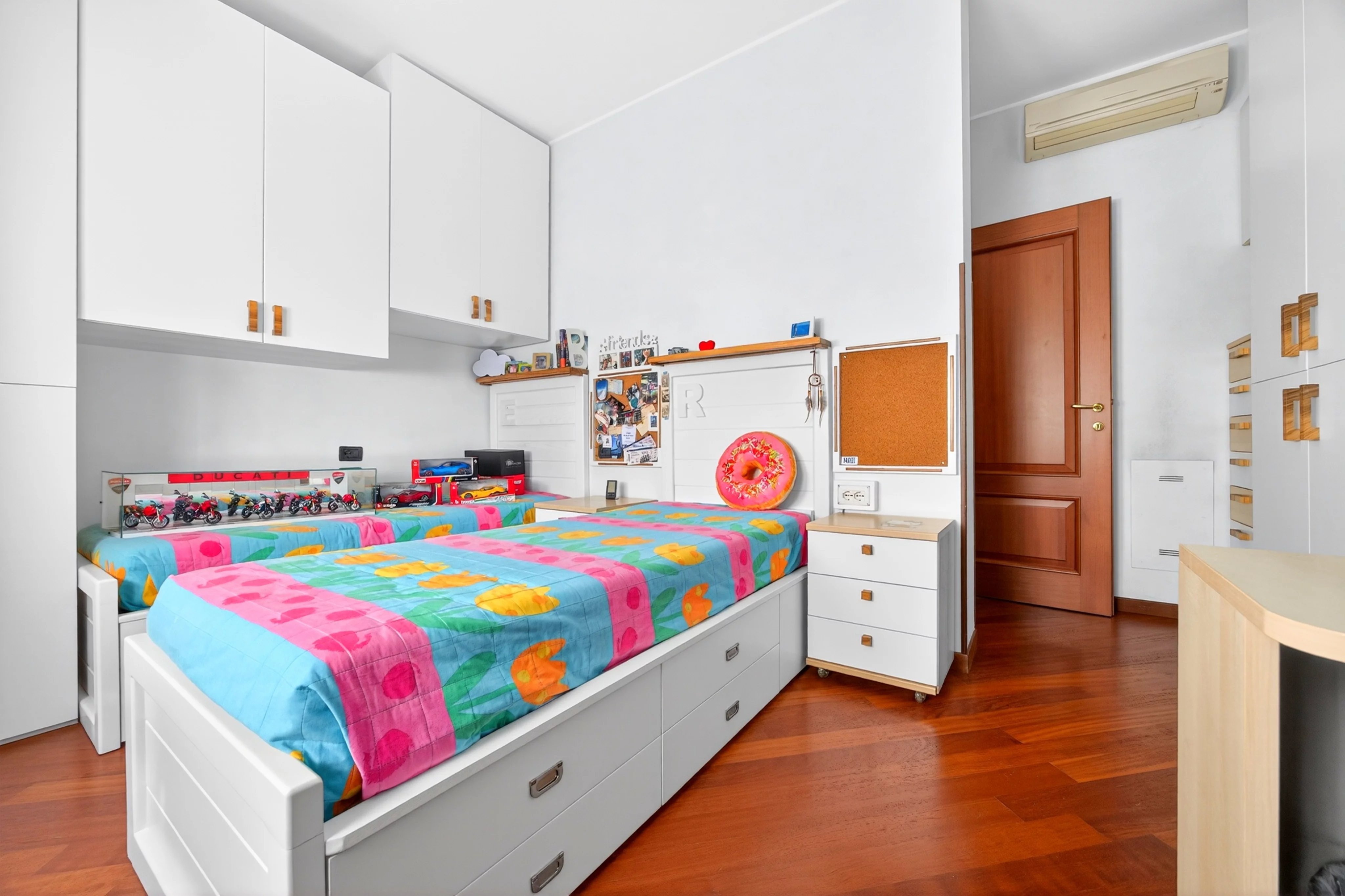 Completano la proprietà un box triplo (70 mq), un box doppio (50 mq) e un ulteriore box singolo in Piazza V Giornate, garantendo spazio per ogni esigenza.