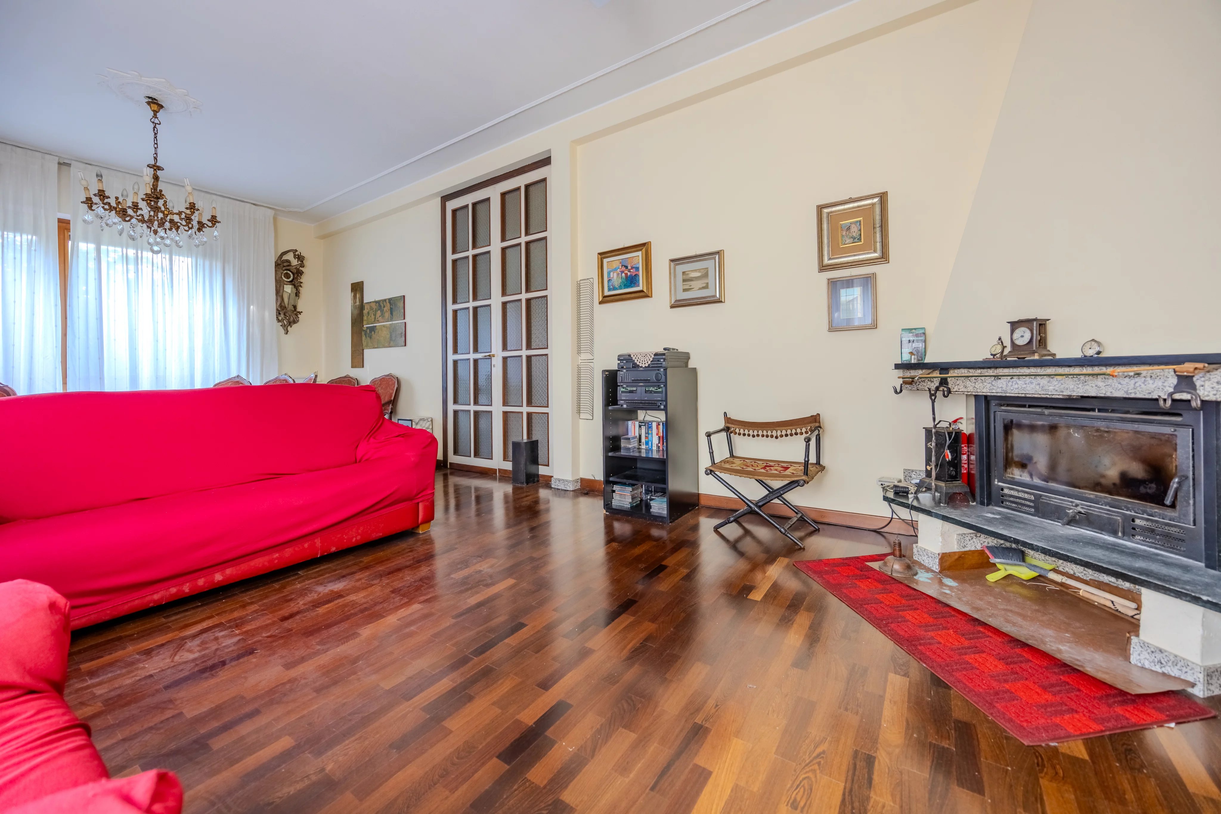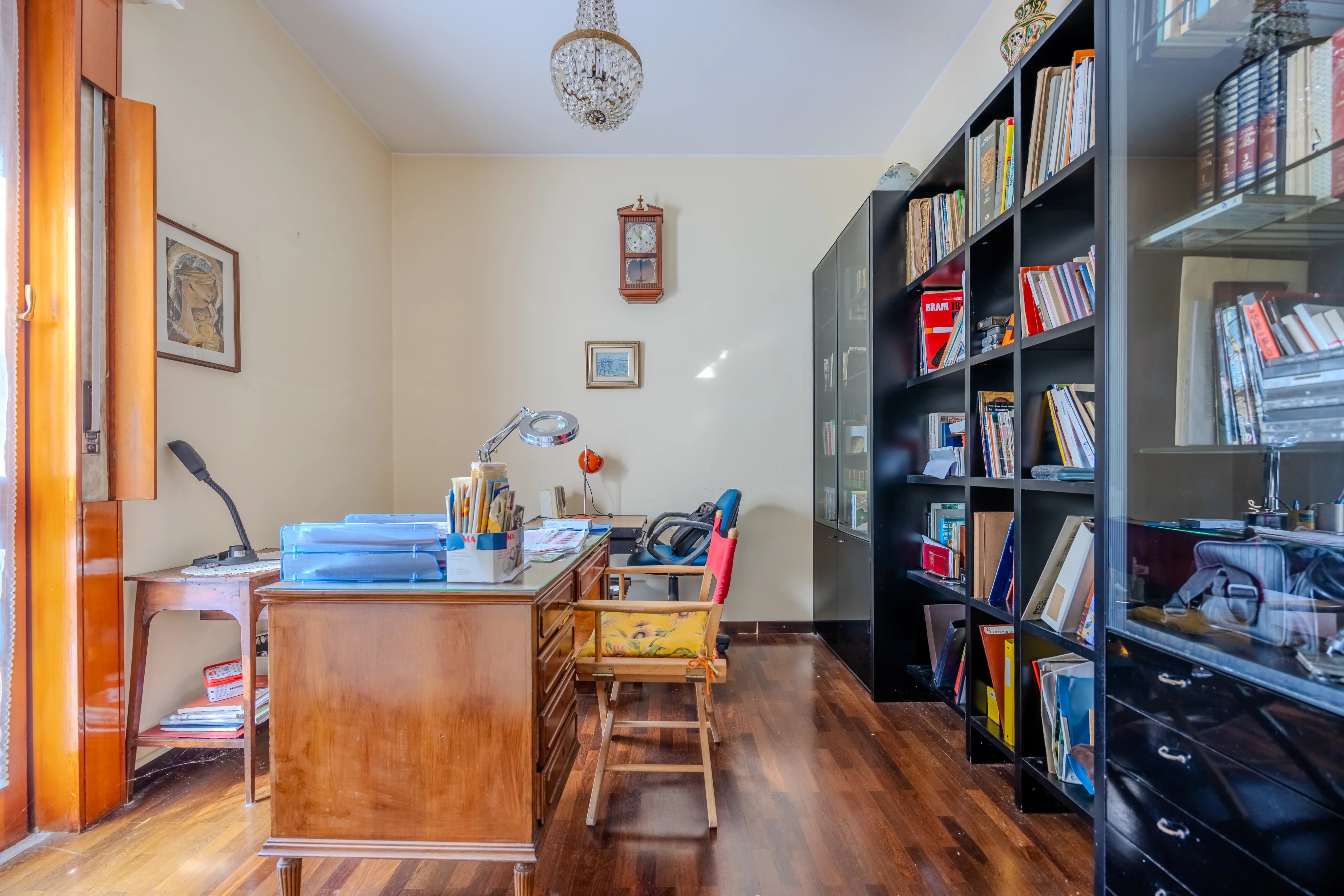 L'abitazione, sviluppata su due comodi livelli, si apre su un'ampia zona giorno: l'ingresso introduce al grande salone impreziosito da un camino. Troviamo poi la cucina abitabile, uno studio ideale per lavorare da casa, un bagno, la lavanderia e il box.