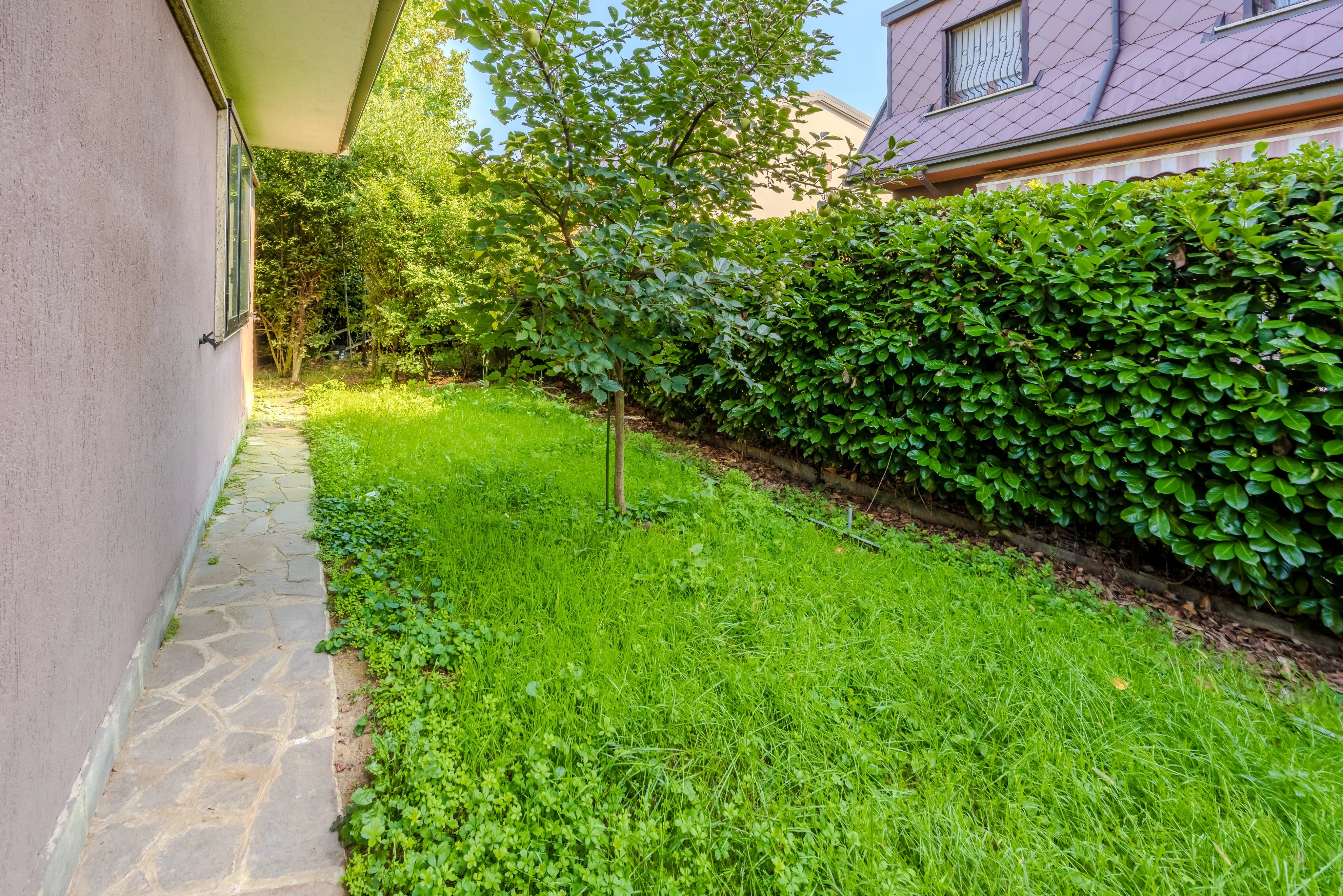 La proprietà è circondata da un giardino privato, lo spazio ideale per i tuoi momenti all'aperto, cene estive o giochi per i bambini.