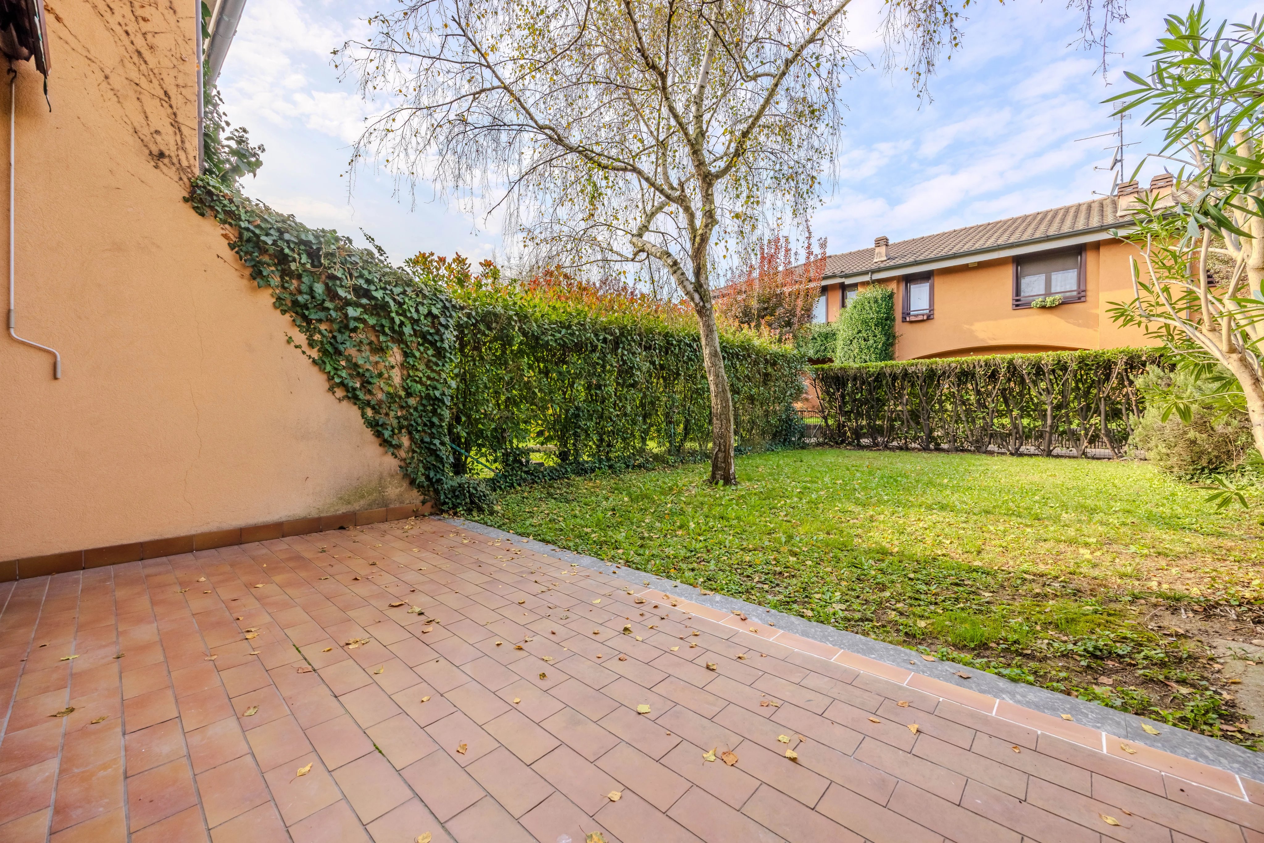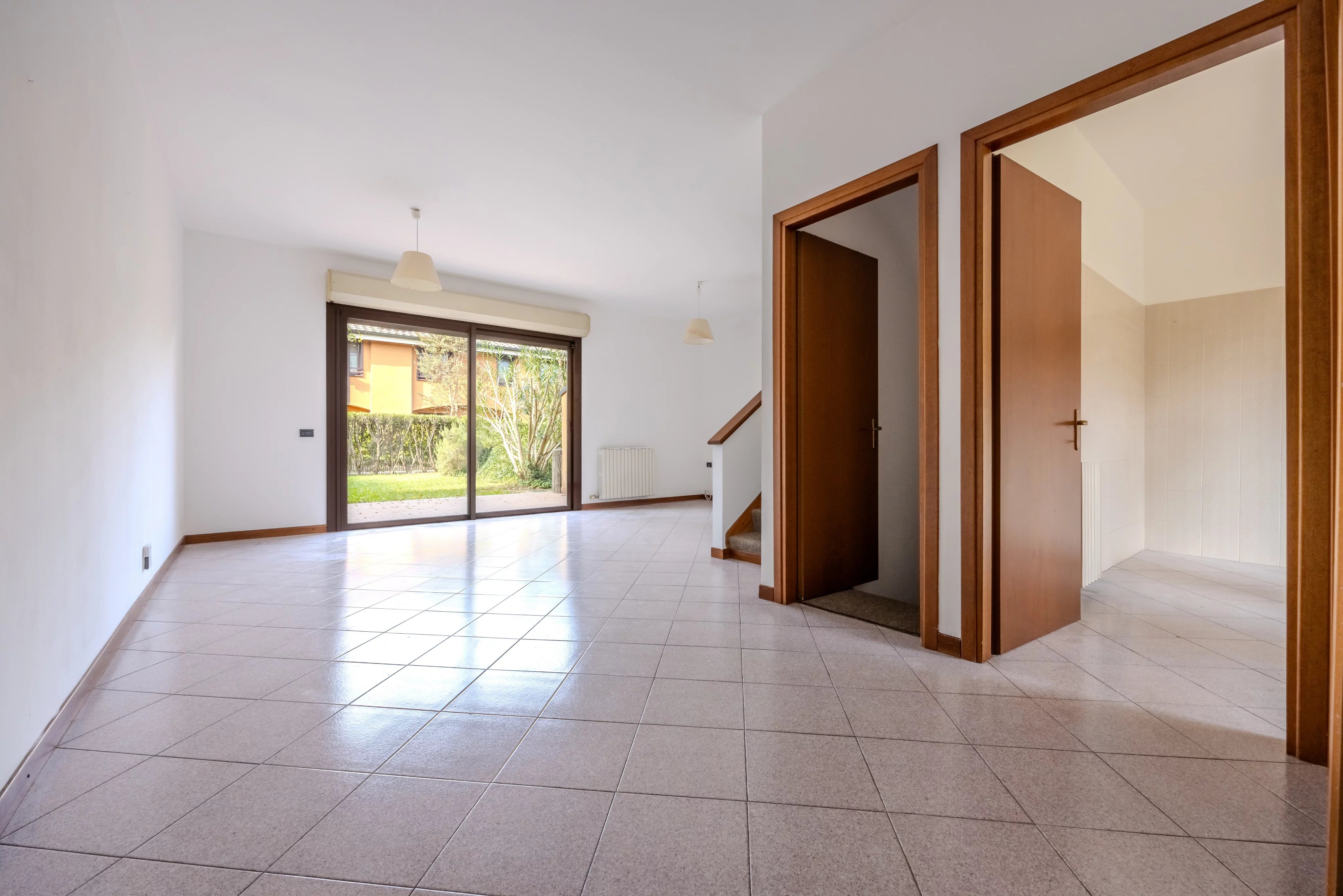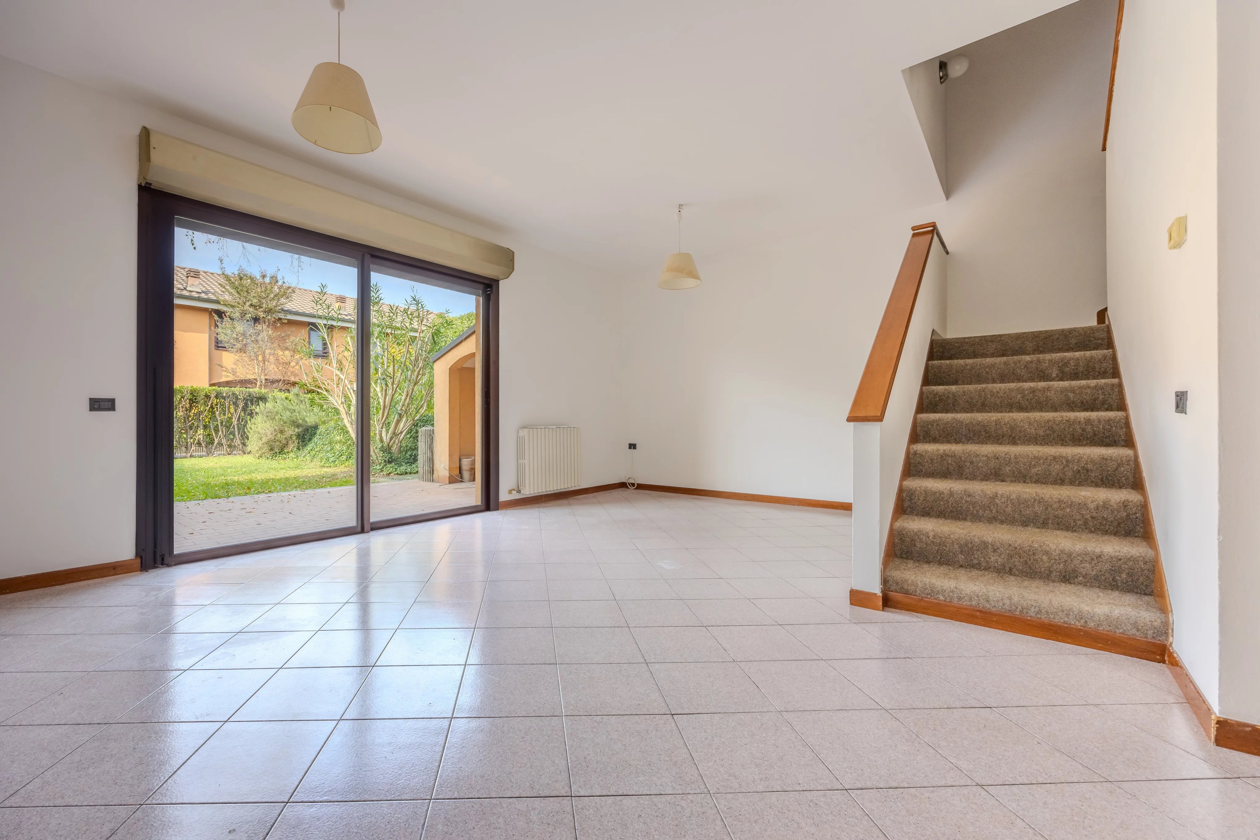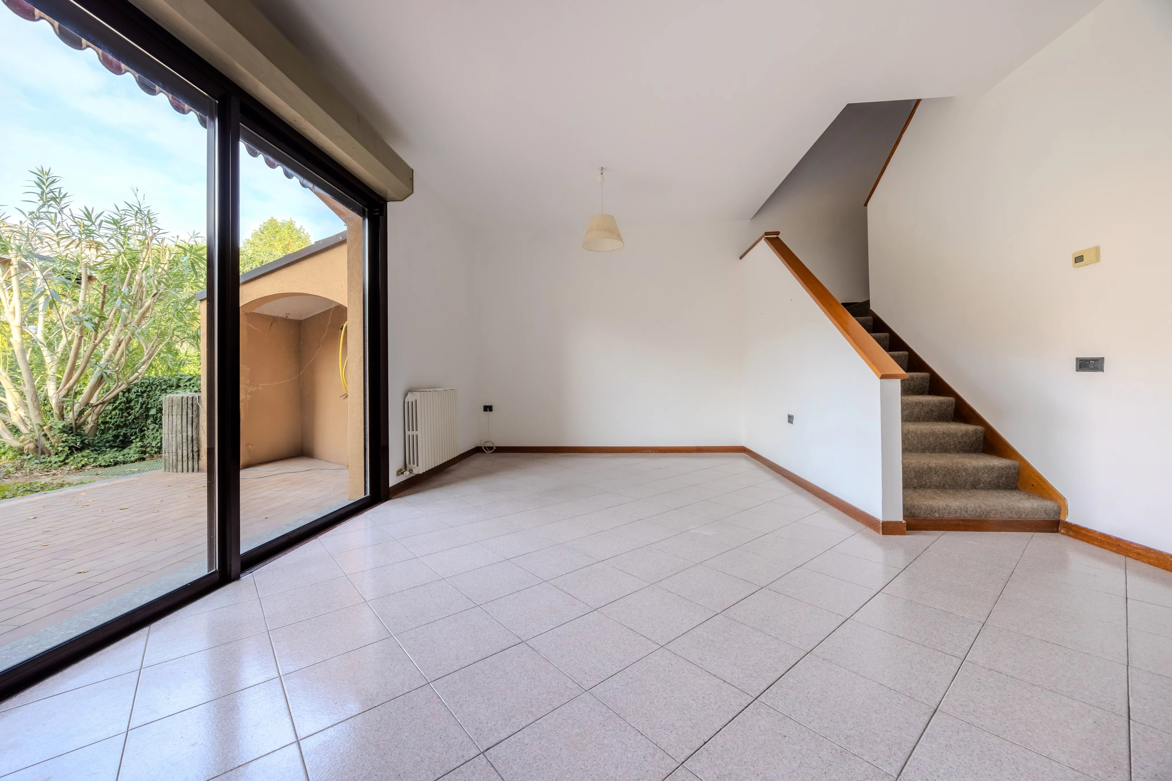 Internamente è composta da un ingresso in soggiorno con accesso al patio e al giardino, cucina abitabile e bagno.